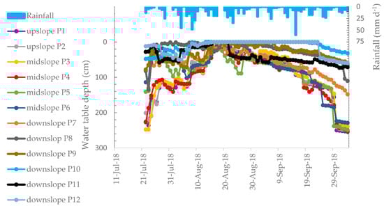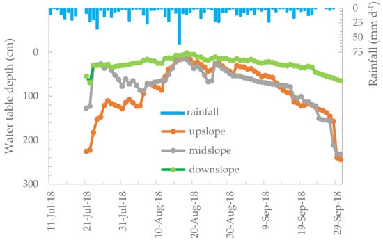| Topographic Position | Infiltration Rate (mm h−1) | Water Table Depth from the Surface (cm) |