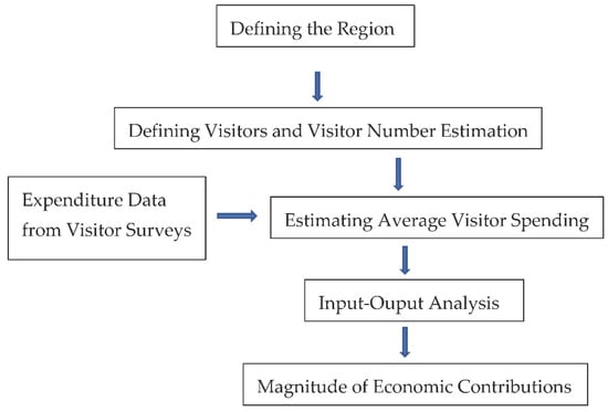 To address the objectives of this study, economic contribution analysis, which is an input–output modelling technique based on the Leontief model, was employed. The flow-chart (Figure 2) below illustrates how this methodology works [,]: