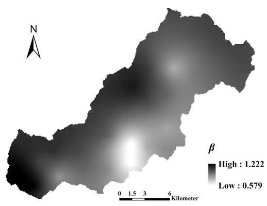 Spatial distribution of terrain impact factor β.