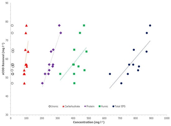 Biosorption of sCOD as a function of EPS Component Concentrations.