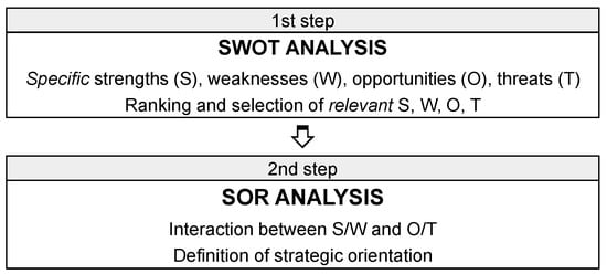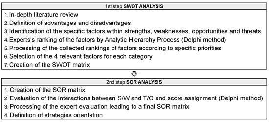 Figure 2 shows the framework of the procedure, consisting of the two above-mentioned steps (SWOT and SOR analysis), which will be described in the following sections.