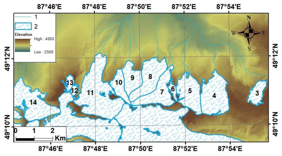 Figure 4 illustrates the scheme of the glaciers on the northern slope of Tavan-Bogd.
