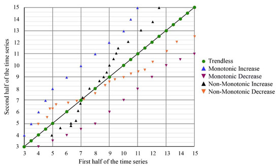 A generalized illustration of innovative trend analysis showing different trends of any given time series.