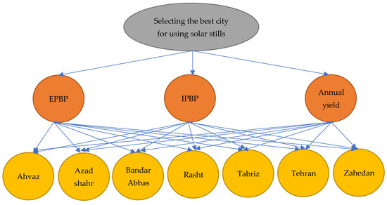 Considering the indicated gap and introduced the research question, this study is done. Iran, which is located in the Middle East region, Asia, is considered as the considered region, and from each climatic condition, a representative city is selected. Then, by considering annual fresh water production (AFWP), energy payback period (EBPT), and investment payback period (IPBP) as the technical, energy, and economic criteria, the priority to install solar stills is found. It is done using the analytical hierarchy process (AHP), as one of the most powerful tools for this purpose.