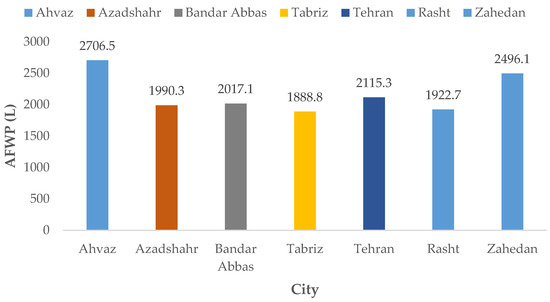 The other four cities have relatively close AFWP values. The reason is the trade-off among the effective parameters for them. Bandar Abbas, Azadshahr, Rasht, and Tabriz are in the next ranks, which have 25.47, 26.46, 28.96, and 30.21% lower AFWP compared to Ahvaz, respectively.