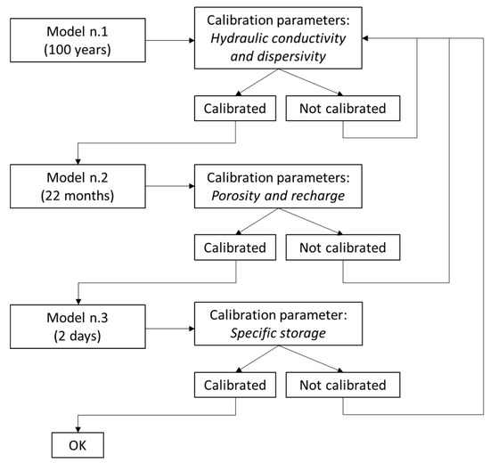Diagram scheme of the numerical modelling calibration phases.