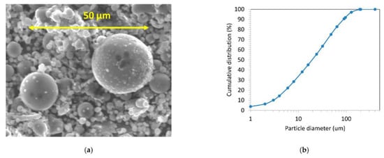 Scanning electron microscopy image (a) and particle size distribution (b) of the coal fly ash [].