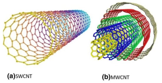 Internal view of single-walled carbon nanotube (SWCNT) and multi-walled nanotube (MWCNT) [].