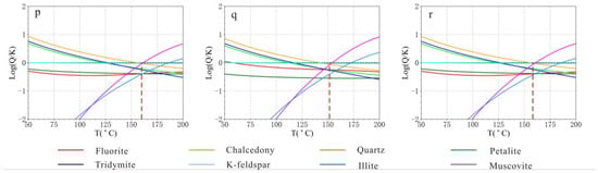 Mineral saturation diagram for the typical hot spring in southeastern China: (a)—Huangkeng; (b)—Tangdou; (c)—Xintang; (d)—Tangkeng; (e)—Xiazhuang; (f)—Songling; (g)—Jingu; (h)—Tangtou; (i)—Pangu; (j)—Xuemei; (k)—Tianli; (l)—Tangan; (m)—Baofen; (n)—Yuandanhu; (o)—Wuyuanwan; (p)—Xinlinwan; (q)—Dongshan; (r)—Yuanshan.