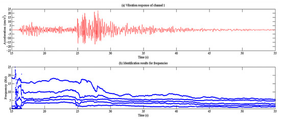 (2) Using different seismic records, the modal identification results showed significant differences. The identified fundamental frequency based on the Newhall earthquake in 2011 was greater than those of the other earthquakes. There are apparent differences between the system identification results identified by some methods and other methods, which may be caused by the calculation errors of the corresponding methods. Some OO-type modal identification methods depend significantly on the assumption that the excitation is steady. However, seismic waves are unsteady, and the violation of this assumption reduces the accuracy of the modal identification results.