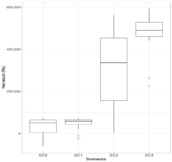 For all the scenarios, the farm size assumed is 1 ha with a typical black soil. We used the 15-year Maddur climatic series (Latitude: 12°35′3.01″ N; Longitude: 77°02′41.64″ E) to run the simulation. The full parametrization of Sc0 is given in Appendix B.