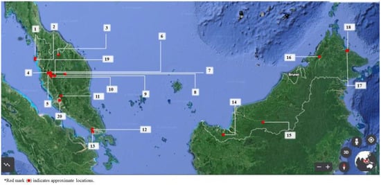 Location of sediment-related disaster events (involving death) in Malaysia.