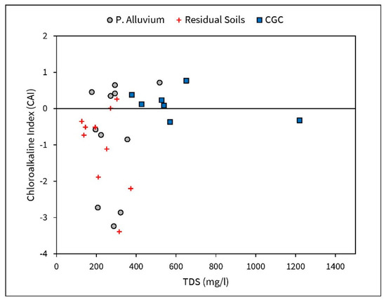 CAI vs. TDS plot; positive CAI indicates reverse cation exchange process, whereas a negative CAI indicates forward cation exchange process.