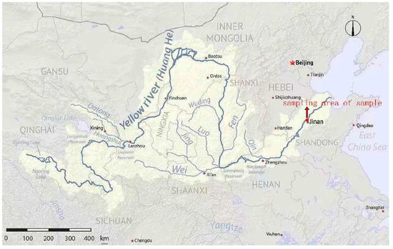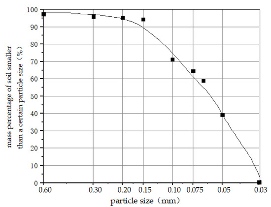 The soil studied in this paper is the alluvial silty soil collected from the Yellow River channel at Luokou, Jinan (Figure 1) in October. The basic physical indexes of the soils measured by laboratory geotechnical tests are shown in Table 1, and the particle grading curve of the tested soil determined by the sieving method is shown in Figure 2.