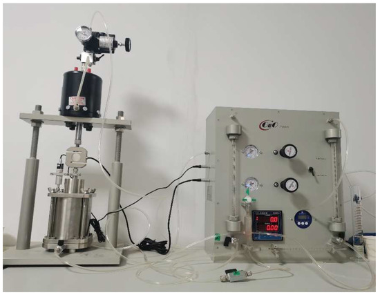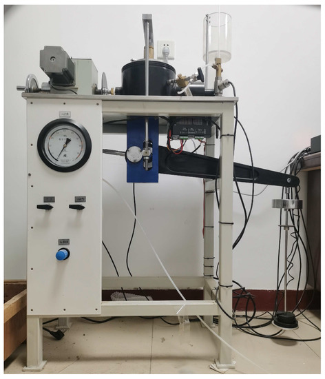 The SWCC test was conducted by utilizing a geo-expert one-dimensional vertical stress SD-SWCC pressure plate instrument as shown in Figure 3 [20,21]. The matric suction was adjusted by the axis translation method, and the pore water pressure was shifted to zero. The matric suction value was controlled by the change of air-entry pressure, and the relationship between matric suction and soil–water content was obtained, and the SWCC was drawn. The ring cover was used to vertically press the ring knife according to the Test Methods of Soil for Highway Engineering (JTG3430-2020). The soil sample in the ring cutter was compacted and cut, and both sides of the soil sample were covered with pervious stone and placed in airless water for 120 min until there were no obvious bubbles, and the degree of saturation was complete. Then a layer of filter paper was placed on the saturated clay plate, and the saturated sample was placed on the top, with the drainpipe connected to the bottom. The top cover of the pressure chamber was installed, and the screw was tightened to gradually increase the air-entry pressure value [22]. During the experiment, matric suction was defined by air-entry pressure value, and the displacement under the corresponding applied matric suction (1 kPa, 2 kPa, 4 kPa, 10 kPa, 20 kPa, 30 kPa, 50 kPa, 100 kPa and 200 kPa) was measured by the pressure plate instrument. The suction equilibrium was determined when the left, right, and horizontal gauges (the horizontal gauges were closed and the reading changed due to evaporation) reached stability after 24 h. As the original soil sample was saturated, dry mass of the sample was evaluated after drying, and the mass of the total saturated soil sample was obtained by conversion. Following this, the volumetric moisture content and degree of saturation after the balance of the applied suction could be obtained by further conversion. The SWCC could be plotted based on the applied suction value and the corresponding degree of saturation.