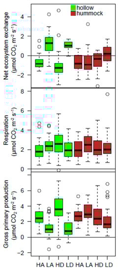 - Laine, A.M.; Mäkiranta, P.; Laiho, R.; Mehtätalo, L.; Penttilä, T.; Korrensalo, A.; Minkkinen, K.; Fritze, H.; Tuittila, E.S. Warming Impacts on Boreal Fen CO2 Exchange under Wet and Dry Conditions. Glob. Chang. Biol. 2019, 25, 1995–2008. [Google Scholar] [CrossRef]