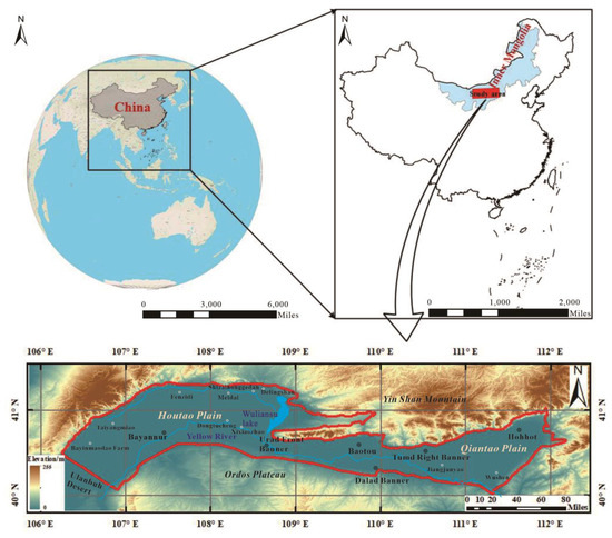 Geographic location and digital elevation model (DEM) of the Hetao Plain.