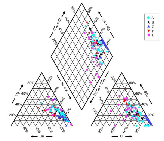 3.2.2. Analysis Based on Three-Line Diagram (Piper)