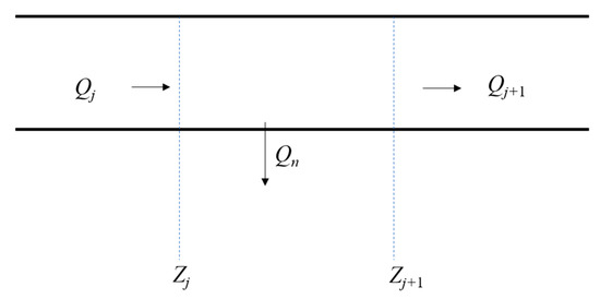 In the Equation, represents the flow before water separation, in ; represents the flow after water separation, in ; and represents the water separation flow at the water outlet, in . Due to the small distance between the water distribution openings, it is generally considered that the water level does not change before and after the water distribution: