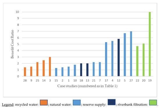 Benefit cost ratios for different MAR types, source water and end uses.