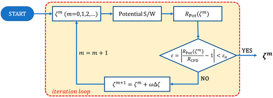 In the third step, iterative calculations were performed while correcting the damping ratio until the RAO obtained from the potential program became identical to that obtained from the CFD in the second step. In this step, the prerequisite should be assumed that the CFD results must be reliable and accurate values. In the iterative process, the damping ratio was modified based on the following process.