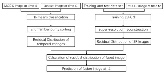 Figure 2 shows the flow of the algorithm. The detailed principle of the algorithm refers to in FSDAF [32] and ESPCN [40]. The variables and definitions of the model are as follows: