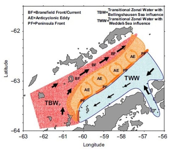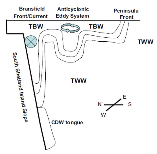 - Zhou, M.; Niiler, P.P.; Hu, J.-H. Surface currents in the Bransfield and Gerlache Straits, Anarctica. Deep-Sea Res. I. 2002, 49, 267–280. [Google Scholar] [CrossRef]