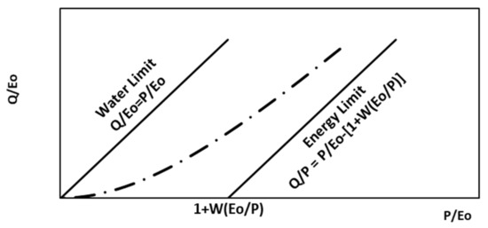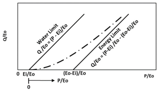 which meets water and energy limits Eo/P → 0 and Eo/P → ∞, respectively. Substituting this last relation in Equation (27), we obtain: