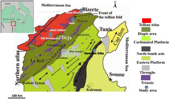 - Souissi, F. Minéralogie et Géochimie des Gîtes Minéraux et leur Impact sur L’environnement. Mémoire d’Habilitation Universitaire; Département de Géologie, Faculté des Sciences de Tunis, Université de Tunis el Manar: Tunis, Tunisia, 2007; pp. 47–65. [Google Scholar]
