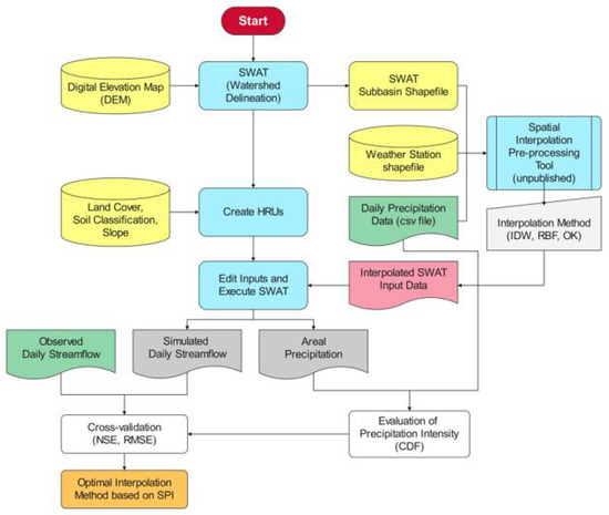 - This study utilized a pre-calibrated model to isolate the effects of interpolation methods from other model parameters, and thus the resulting streamflow cannot be applied to practice (i.e., watershed management, dam operations, and sediment analysis). For practical applications, the model should be calibrated after selecting the best interpolation method for precipitation;