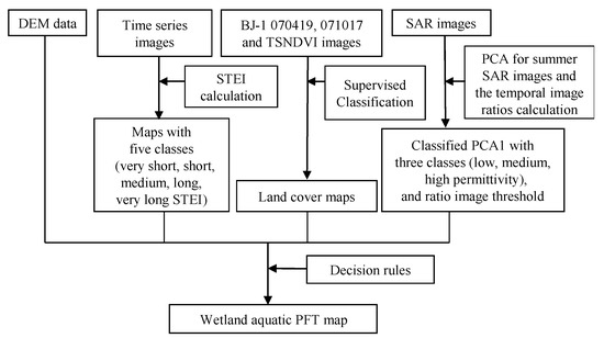Here, we design a new rule-based aquatic PFT classification method and a DT classification method by integrating time-series optical and radar data and DEM data (Figure 6). The steps for the rule-based aquatic PFT classification method are presented in Figure 6.