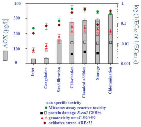 Through the bioanalytical tests performed on the organic micropollutants in drinking water treated with these treatments, it was found that there were no drinking water standards exceeded (Figure 5).