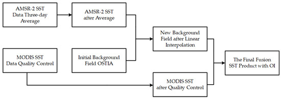 This investigation applied the OI method to fuse MODIS infrared SST data and AMSR-2 microwave SST data. In addition to combining two data sources in this case, we tested how remote sensing data from other sensors could be merged to meet various needs, with the characteristics of multiple sensor observations combined to obtain an SST fusion product with high spatial and temporal resolution.
