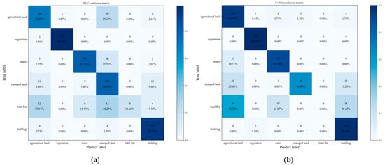 Confusion matrix results at 902-point validation data. (a) MLC confusion matrix. (b) U-Net confusion matrix.