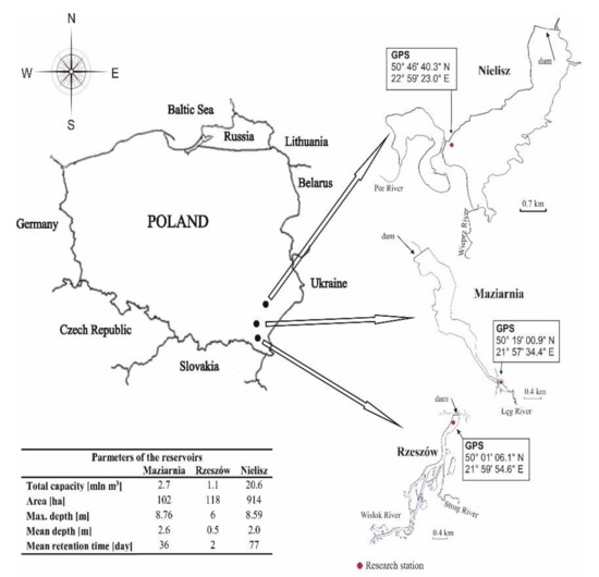 The objects of research were the sediments present in selected reservoirs of SE Poland, located in Podkarpackie Province (Rzeszów and Maziarnia Reservoirs) or Lubelskie Province (Nielisz Reservoir).