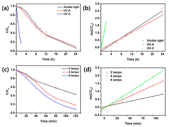 - Van Doorslaer, X.; Demeestere, K.; Heynderickx, P.M.; Van Langenhove, H.; Dewulf, J. UV-A and UV-C induced photolytic and photocatalytic degradation of aqueous ciprofloxacin and moxifloxacin: Reaction kinetics and role of adsorption. Appl. Catal. B Environ. 2011, 101, 540–547. [Google Scholar] [CrossRef]