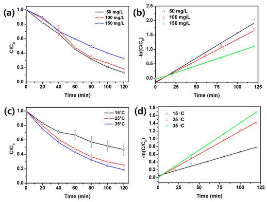 3.1. Effects of Irradiation Source, Light Intensity, Initial OTC Concentration, and Solution Temperature on OTC Degradation