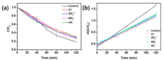 3.2. Effects of HA and Inorganic Ions on OTC Degradation
