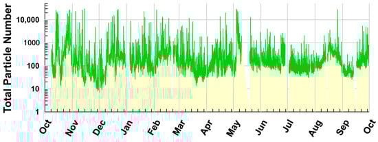 On the other hand, the temporal evolution of turbidity, number of particles in their different granulometries, and color have been analyzed in order to determine some pattern of behavior throughout the year.