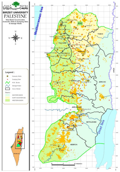 - Daajna, D.H.M.A. Water Pollution Problems in the West Bank. Maghreb J. Hist. Soc. Stud. 2020, 12, 109–134. [Google Scholar]