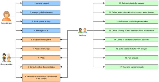 We established 17 main functionalities of the system for the three types of WaterProof users. Figure 1 summarizes this information.