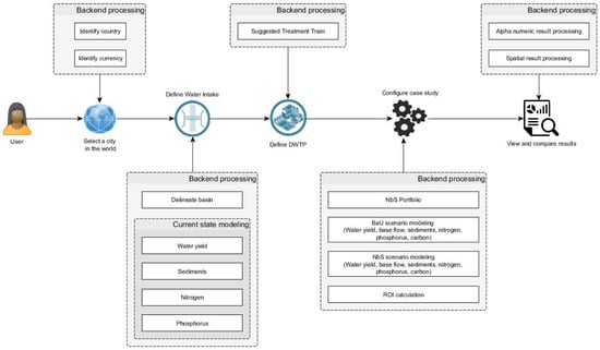 From the perspective of a watershed investment program [], in the pre-feasibility phase, it is very important to be able to assess the potential for NbS to address water security challenges, but the effort required to analyze the ROI in this phase is often time- and cost-prohibitive []. Considering this need, we have developed WaterProof as a free web-based tool for high-level ROI assessment, designed to provide stakeholders interested in NbS with a pre-feasibility assessment regarding NbS potential.