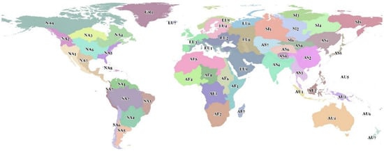 - Fick, S.E.; Hijmans, R.J. WorldClim 2: New 1-km spatial resolution climate surfaces for global land áreas. Int. J. Climatol. 2017, 37, 4302–4315. [Google Scholar] [CrossRef]
