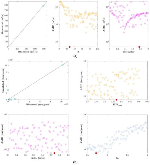 The parameters of the Sediment Delivery Ratio model are presented in Table 9. For the coherence analysis, the parameters usle_c, Kb and SDR_max were evaluated. The usle_c parameter was evaluated through a proportional multiplied factor for each LULC. The usle_p parameter was set to 1 for all land cover and land use, according to the recommendation given by []. Finally, the ICo parameter was set to a value of 0.5 according to the recommendation of the user’s guide [].