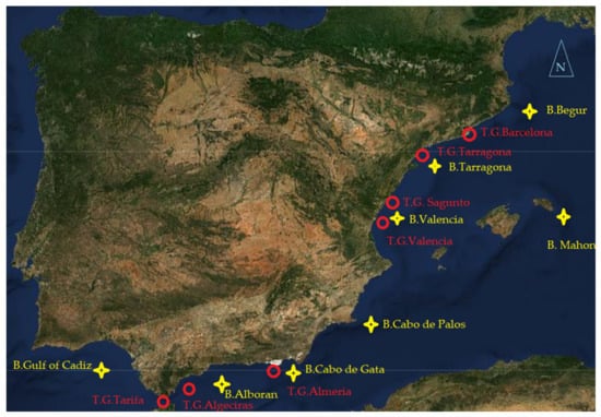 All the data were taken from the Spanish ports’ website []. Data have been collected from the available buoys and tide gauges along the Spanish Mediterranean coast. Of all the available buoys and tide gauges, all those who met the following criteria were chosen for the analysis: