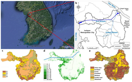 Owing to rapid urbanization in the middle and upper streams of the Gulpo Stream in the Gulpo Stream basin, the paved area of asphalt and concrete has widened significantly; this area can deteriorate the underground penetration capacity. The same is true for the erosion of surrounding agricultural land owing to the coverage of rivers in the middle and upper reaches and expansion of urban areas. As the Ara Stream Basin is geographically adjacent to Seoul City, it is sensitive to the intensity of urbanization, and consequently, the lowlands of rivers in this area where wetlands were formed in the past have now undergone rapid urbanization.