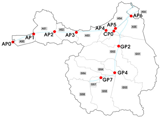Figure 5 and Table 1 shows the sub-area locations and the input data of unsteady flow model. The CP0 is integrated with CP0 and GP1; GP2 is integrated with GP2 and GP3; GP4 is integrated with GP4, GP5, and GP6; GP7 is integrated with GP7, GP8. The West Sea drainage gate is located at AP0. The inverted syphon gate is located at AP4. The AP6 is just before connecting waterway, and GP2 is downstream of connecting waterway.