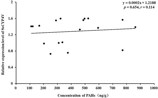 Relationship of the SsCYP4V mRNA relative expression level in S. scutata and concentration of sediment-borne PAHs.4.