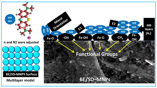 Case3: n ≥ 1: Based on this state, the functional group of BE/SD–MNPs can accept one or more MB molecules, thus suggesting a non-parallel orientation (i.e., a multi-molecular uptake mechanism).