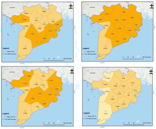 3.2. SPI 1-Month Spatiotemporal Drought Analysis for the VMD